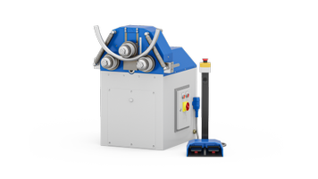 A roller tube bending machine bends cylindrical profiles along circular arcs, using a specific bending angle or radius. In the double-angle version, the lower rollers are adjustable and define the inlet and outlet bending radius, while the central roller remains fixed.
