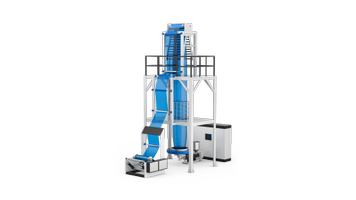 The blown film extrusion line is an industrial solution for the continuous production of plastic films through an extrusion and blowing process. Unlike traditional extrusion, in this process the polymer is melted by one or multiple parallel extruders and pushed through a circular die, which generates a tube. This tube is then inflated with high pressure air, so it swells like a bubble and is stretched into film. This process is used to produce thin plastic sheets for packaging (such as bags of various sizes) or protective films.