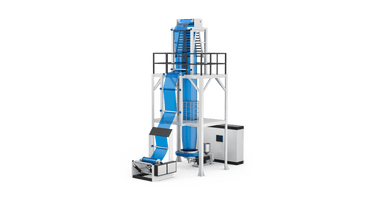 The blown film extrusion line is an industrial solution for the continuous production of plastic films through an extrusion and blowing process. Unlike traditional extrusion, in this process the polymer is melted by one or multiple parallel extruders and pushed through a circular die, which generates a tube. This tube is then inflated with high pressure air, so it swells like a bubble and is stretched into film. This process is used to produce thin plastic sheets for packaging (such as bags of various sizes) or protective films.